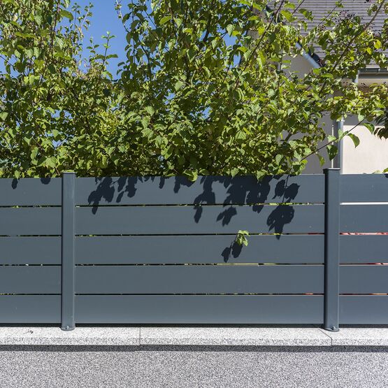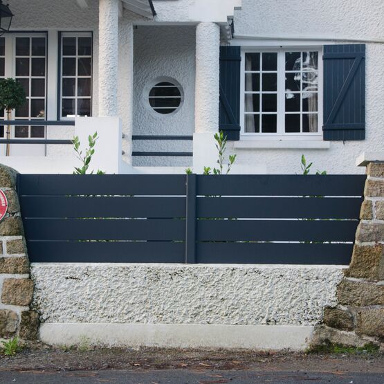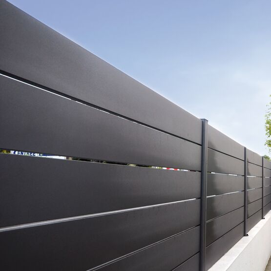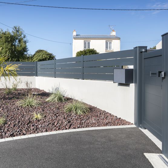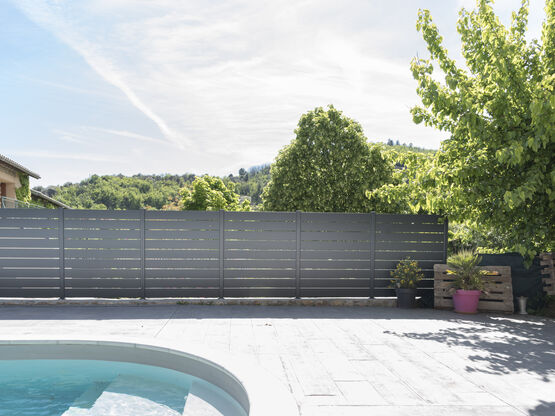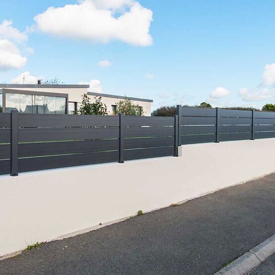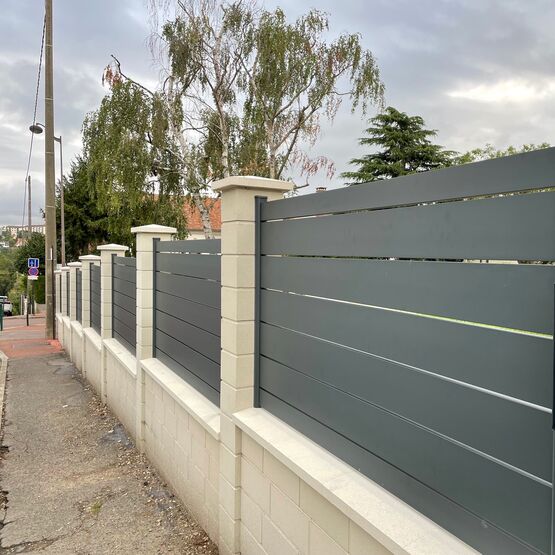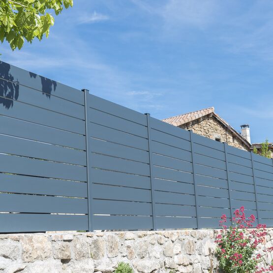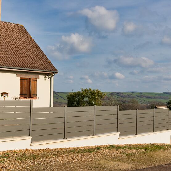 La clôture Maez, avec ses lames ajourées 160 mm, délimite votre terrain.