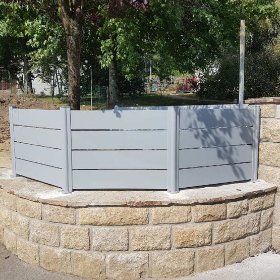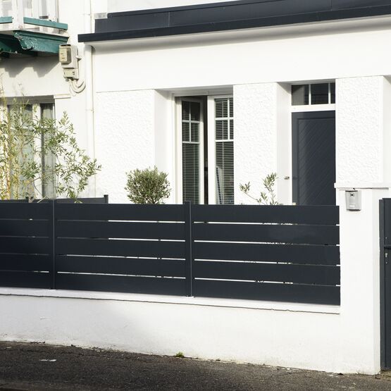 La clôture en aluminium Maez est fabriquée sur-mesure pour épouser toutes configurations : sur muret, au sol, en redans, etc.