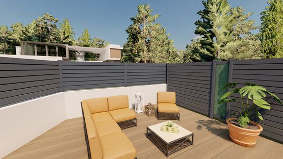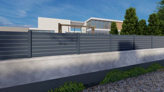 - Clôture Némo avec lames persiennes et poteau multidirectionnel