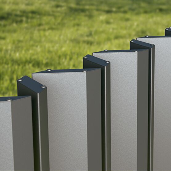 LINEA : profilés alu orientés droits sur la longueur, assurant un effet occultant tout en conservant la modernité d'un design linéaire