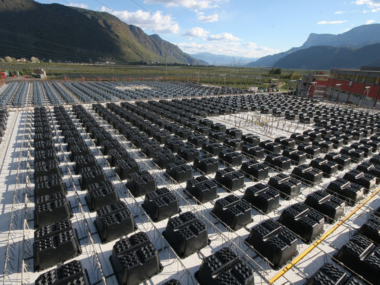Grâce au pied élévateur conique, en effet, en noyant les coffrages U-Boot® Beton dans la coulée de béton armé, on obtient un treillis de poutres orthogonales entre elles, fermées inférieurement supérieurement par une dalle plate, réalisées en séquence et en un unique coulage; le tout avec une forte économie de béton armé et d’acier.
