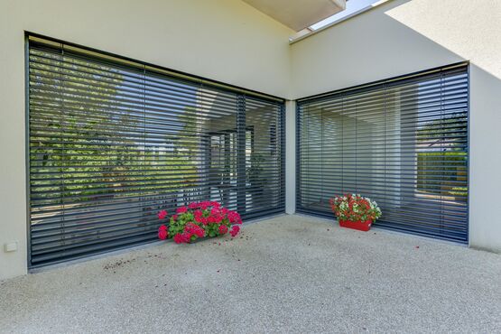 Le coffre ITEO peut intégrer un volet roulant avec des lames alu ou pvc de 37 ou 50 mm, ou un Brise-Soleil orientable.