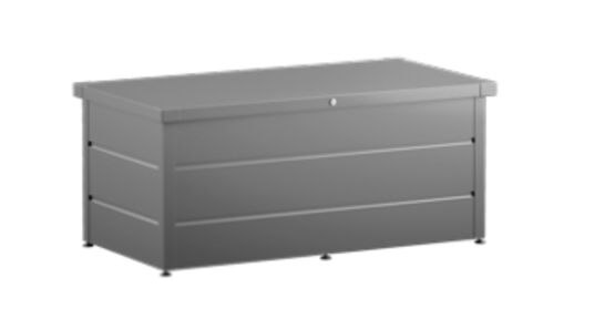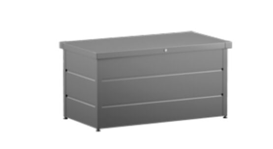 Les coffres de jardin Juno sont déclinés en deux couleurs standards à l'extérieur (RAL 9007 Aluminium gris et RAL 7016 Gris anthracite) et en une seule couleur standard à l’intérieur (RAL 9002 Blanc gris).