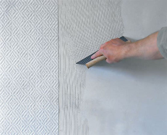 La mise en œuvre de cette pâte est réalisée par simple encollage à l’aide d’une brosse, d’un rouleau ou d’une spatule crantée.