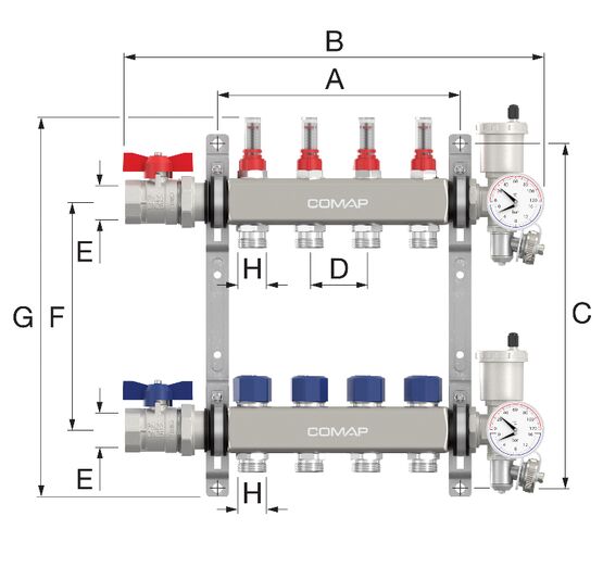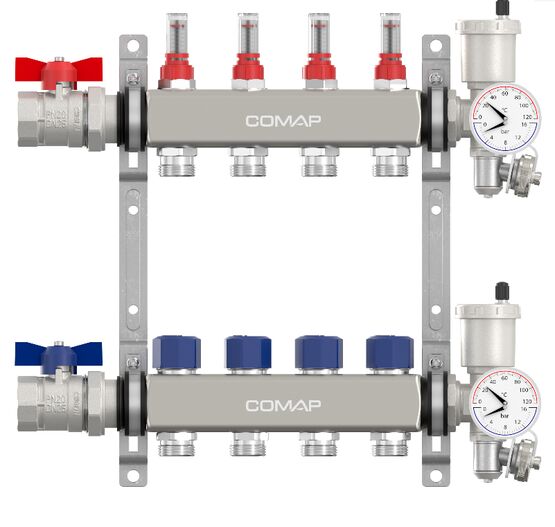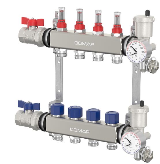 4. Polyvalence d'application : Adapté aussi bien aux planchers chauffants qu'aux systèmes de rafraîchissement, ce collecteur s'intègre facilement dans divers types d'applications, des logements collectifs aux bureaux.