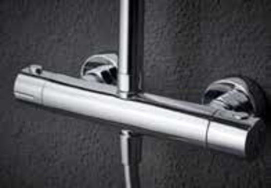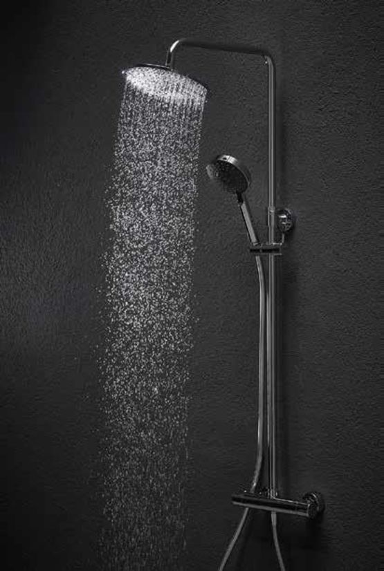 Colonne de douche AQUAHEAT avec mitigeur thermostatique et pomme de tête pluie ronde |A47168