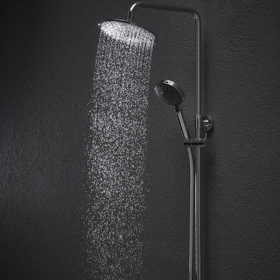 4. Confort optimal : Dotée d'une pomme de douche pluie de 22 cm et d'une douchette à main ajustable avec trois jets, cette colonne offre une expérience de douche personnalisée. Les surfaces anticalcaires contribuent à une maintenance simplifiée, augmentant ainsi la durée de vie de l'équipement.