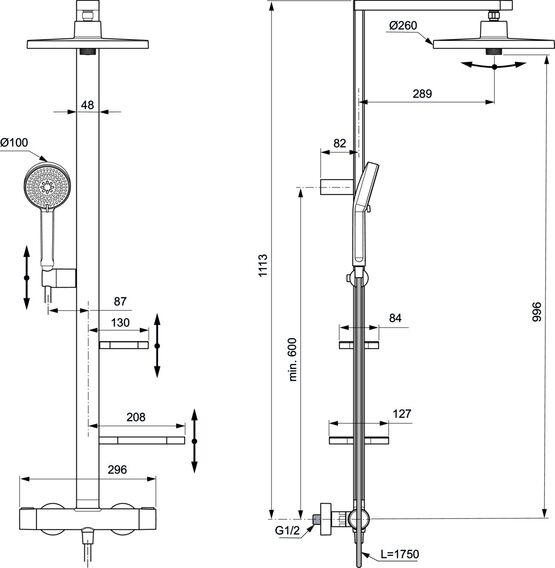 4. Praticité renforcée: Équipée de deux tablettes intégrées, la colonne Alu+ offre un espace de rangement pratique et facilement accessible pour les produits de douche et accessoires, optimisant ainsi le confort d'utilisation.