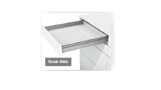 Les types de tiroirs gammes métalliques : tiroirs H63, Tiroir intérieur H90, Tiroir H122, Tiroir H122 avec réhausse rectangulaire, etc.