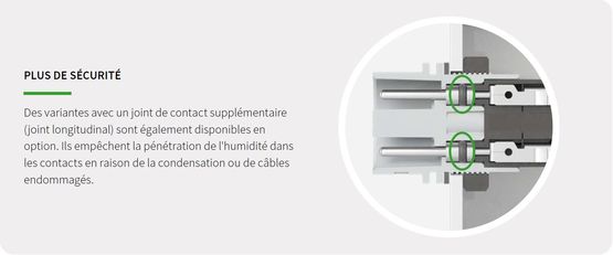 - Joint d’étanchéité individuel des contacts (longitudinal)