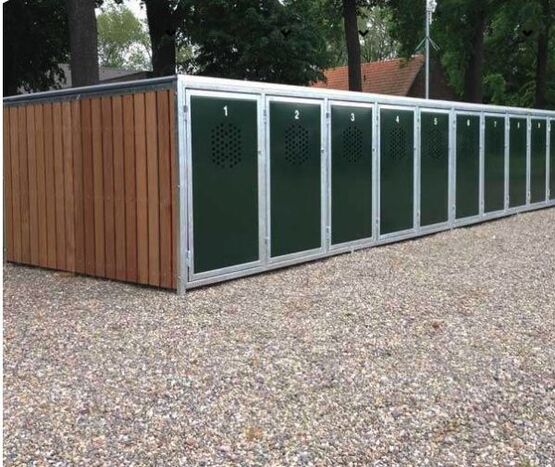 Fabriquées en tôle galvanisée, ces solutions de stationnement peuvent accueillir jusqu’à 5 vélos. Elles sont dotées de portes en tôle d’acier avec une plaque perforée et de cloisons en maille tissée. Le bardage peut être en tôle ou en bois.