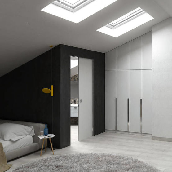 Les Scrigno Essential sont équipés de profilés d’une finition simple. Une fois installés, ils pourront recevoir la même peinture ou finition de la cloison, détail qui crée subtilité et homogénéité dans la composition spatiale.
