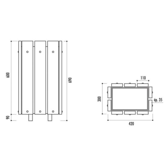 - Modèle avec ou sans couvercle en métal peint noir RAL 9005 vissé sur les lames