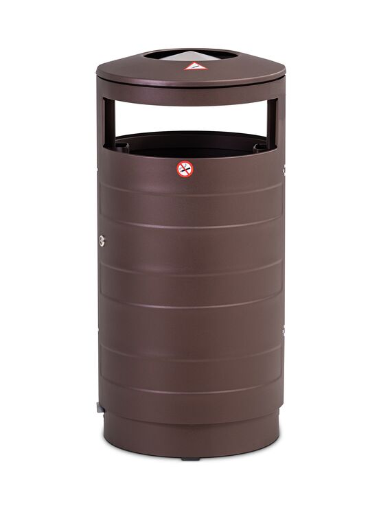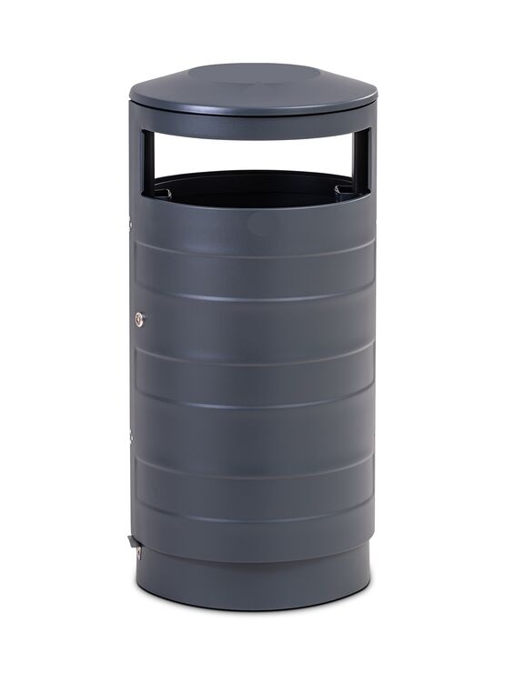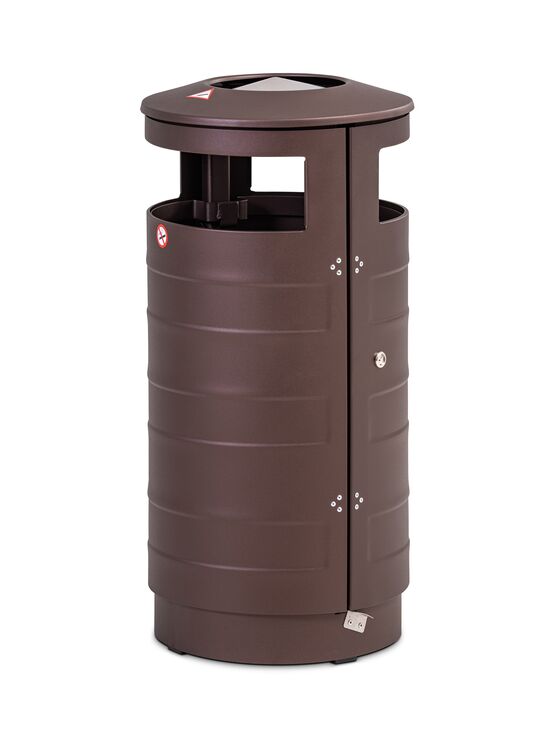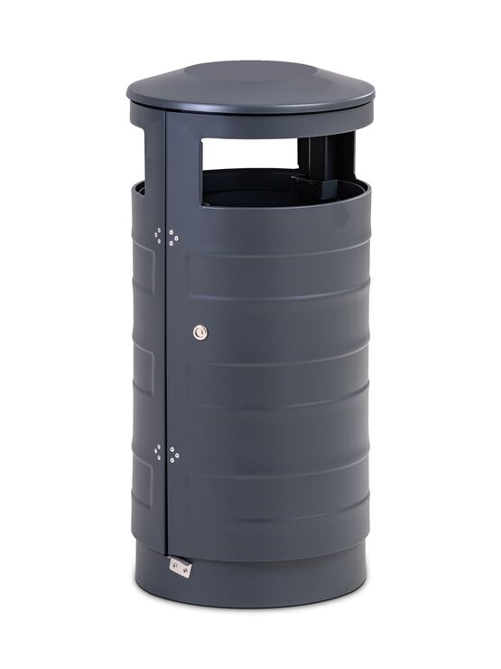 Cette poubelle urbaine possède une fermeture sûre avec une serrure automatique.