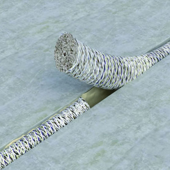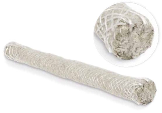 Bourrelet coupe-feu cylindrique en laine minérale maintenue dans une tresse.