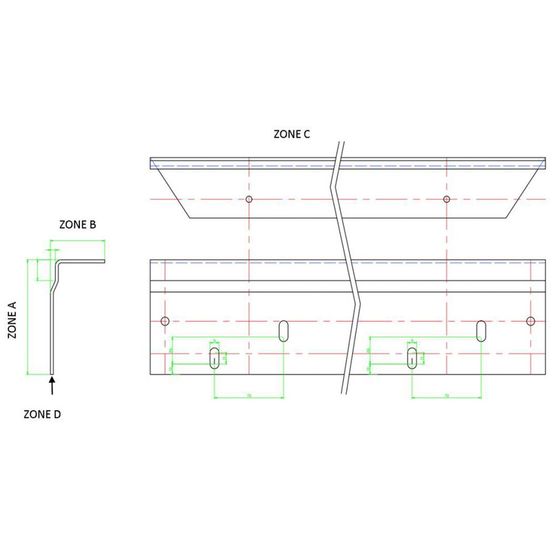 Ces accessoires métalliques de fixation comportent 4 zones : zone A qui correspond à la côte de maçonnerie, zone B désignant la côte de menuiserie, zone C déterminant la longueur de la cornière et zone D désignant l’épaisseur de la matière.