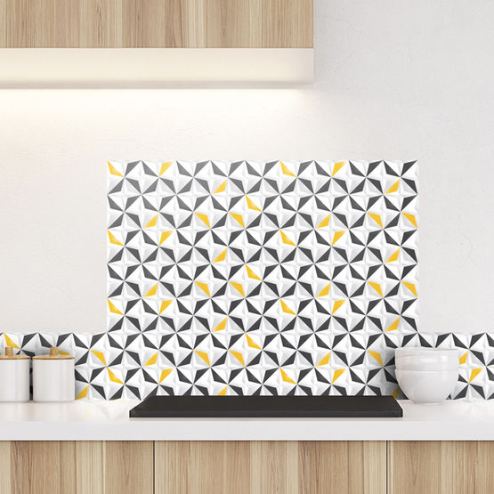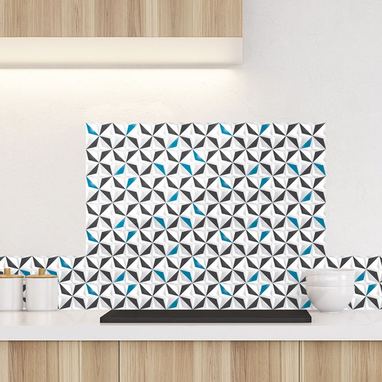 2. Facilité d'installation : Fournie avec des bandes adhésives TESA, la crédence se fixe aisément sur des surfaces variées, telles que le placoplâtre et le carrelage.