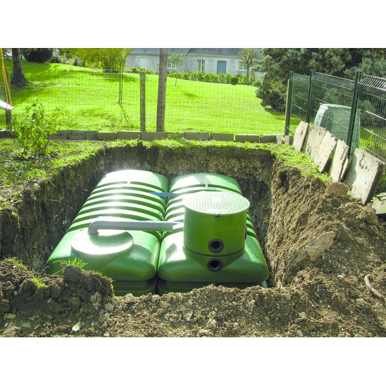- Cuves enterrées double peau pour la récupération des eaux de pluie.