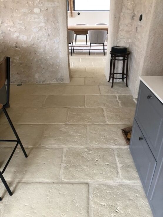 Dallage intérieur en béton, modèles aspect pierre vieillie et patinée