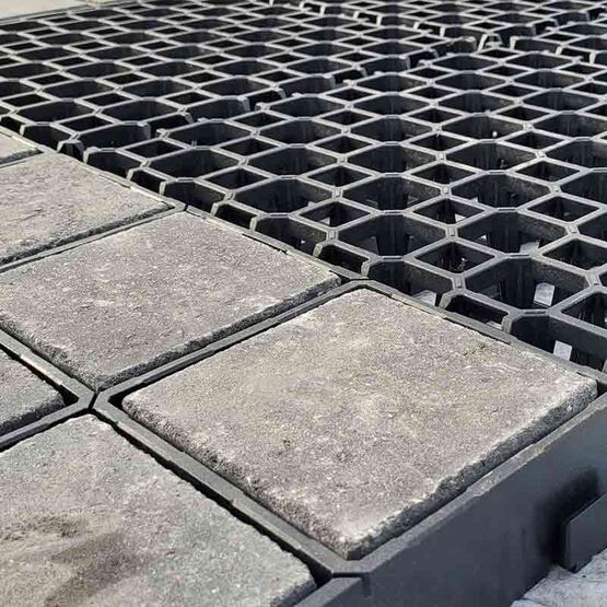 Le design de la dalle assure la stabilité de la surface tout en favorisant l’infiltration des eaux pluviales dans le sol support.