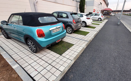 La dalle pavé permet de délimiter facilement les places de parking et emplacements PMR.