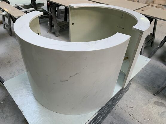 - Dalle carrée de 16 mm d'épaisseur à base de résine et de pierres naturelles (quartz ou marbre).
