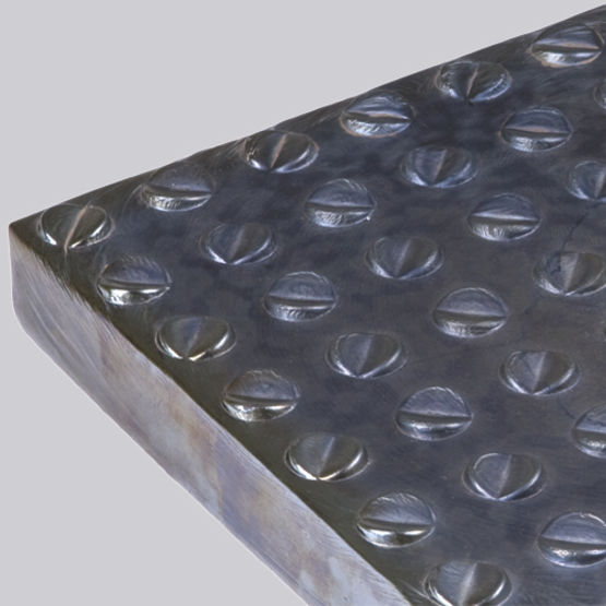 Ces dalles antidérapantes sont fabriquées en plusieurs dimensions et épaisseurs. Un moule peut être créé en réalisant le relief selon le choix du client.