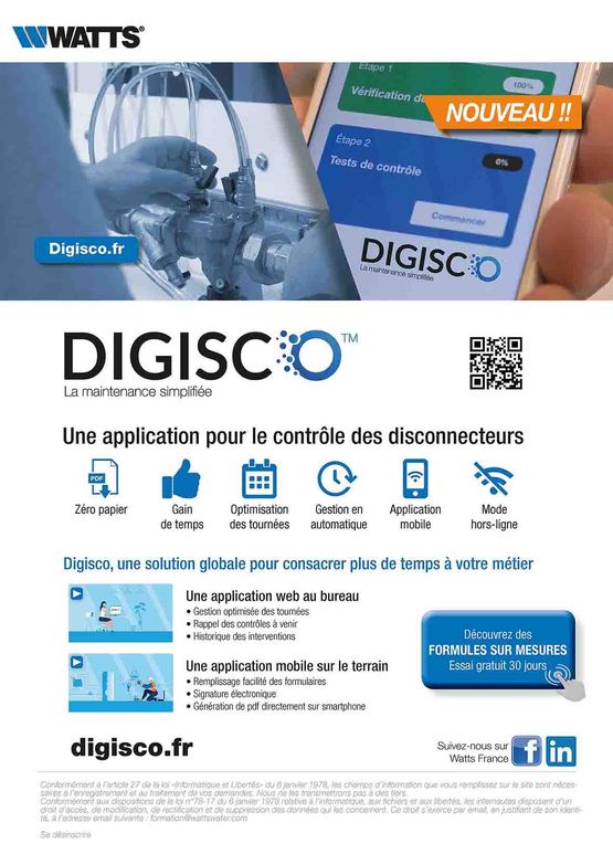 Digisco a été spécialement développé pour les contrôleurs de disconnecteur tels que les installateurs, sociétés de maintenance, plombiers chauffagistes, organismes de contrôle et organismes de formation.