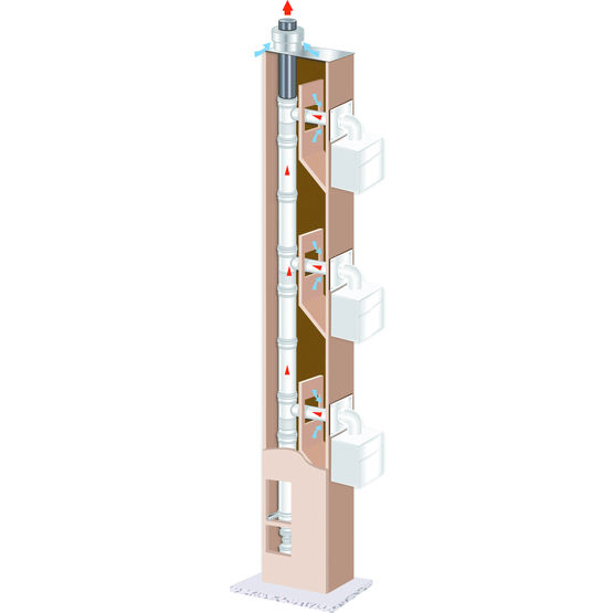 Dispositif de raccordement de chaudières à gaz en conduits collectifs | Rolux 3CEp Condensation Rénovation
