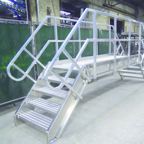| Accessoires : | pattes d'ancrage, plate-forme d'accès, d'extension ou intermédiaire, main courante, passerelle de sortie, échelle d'accès ou de secours, barrière de sécurité et porte de condamnation. |