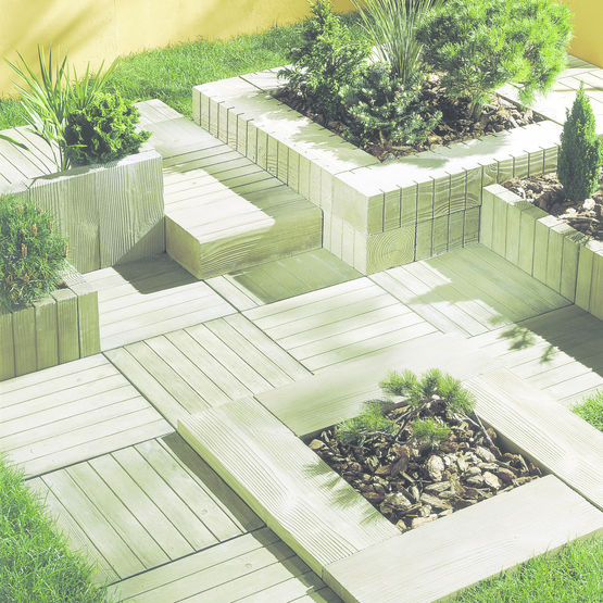 Elements modulaires aspect bois pour espaces paysagers | Novaland