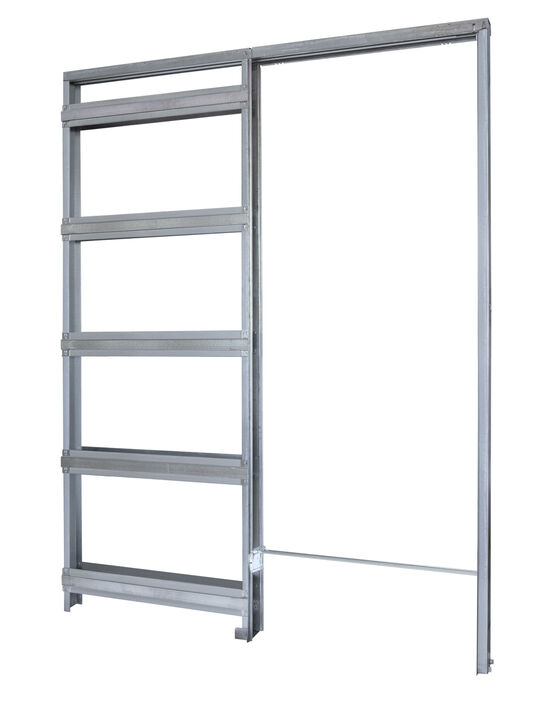 L'encadrement de porte universel en aluminium intègre les portes jusqu'à 100 kg dans un mur ou une cloison de 125 mm d'épaisseur de manière invisible.Très stable, il limite le risque de fissure dans la couche de finition grâce aux raccords d'angle, au profilage à queue d'aronde et à l'assemblage solide au mur, avec un jeu de 5 mm en partie haute. Equipé d'une ferrure coulissante sur rail démontable même après finition (Proslide) avec amortisseur, il est disponible en plusieurs dimensions. Profilage à butée de 14 mm adaptée à tous types de plaques de plâtre. Cadre complet démontable, composé d'aluminium et d'argentalon, matériau de synthèse diminuant le bruit pendant la galande. Passage libre de 100 %.