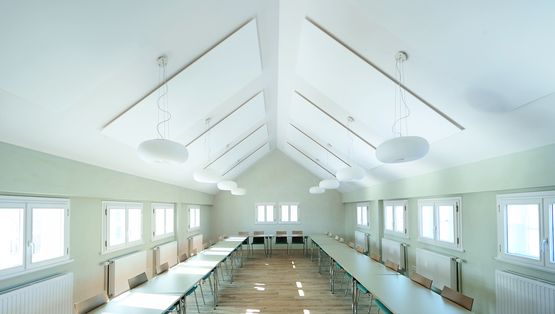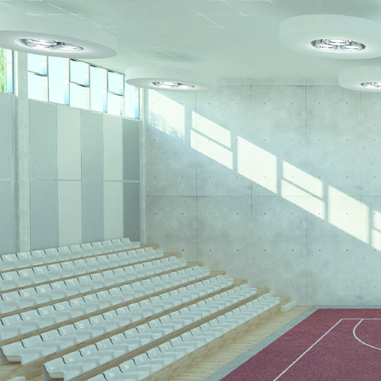 | Mise en oeuvre : | encastrement en mur ou plafond, jointé aux panneaux acoustiques (Baswaphon) ; revêtement des masses de recouvrement en sable de marbre |