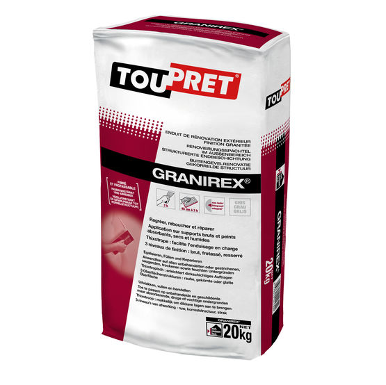 Cet enduit de peinture est destiné à la rénovation et la réparation non structurale des façades en service. Formule enrichie en fibres courtes et granité pour conserver le grain du ciment. Excellente adhérence, même sur fonds humides bruts. Offre une très grande dureté de surface. Produit thixotrope facilitant l'enduisage en charge et perméable à la vapeur d’eau. Adapté également à tous travaux d’enduisage des supports extérieurs peints ou bruts. Application sur supports bruts et peints absorbants, secs et humides, non suintants (béton, béton cellulaire, mortiers et enduits de ciment, parpaings, briques, pierres, etc.).