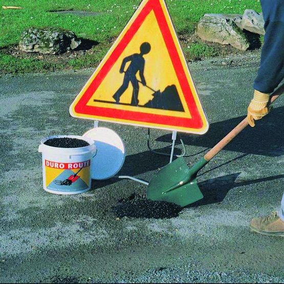 | Mise en oeuvre : | versement de l'enrobé dans le trou en créant un léger dôme puis tassage avec le dos d'une pelle ; pour les cavités de plus de 5 cm d'épaisseur, déposer un premier lit d'enrobé de 1 cm, remplissage de graves puis finition par une couche d'enrobé de 2 à 3 cm ; versement de l'enrobé dans le trou en créant un léger dôme puis tassage avec le dos d'une pelle ; pour les cavités de plus de 5 cm d'épaisseur, déposer un premier lit d'enrobé de 1 cm, remplissage de graves puis finition par une couche d'enrobé de 2 à 3 cm. |