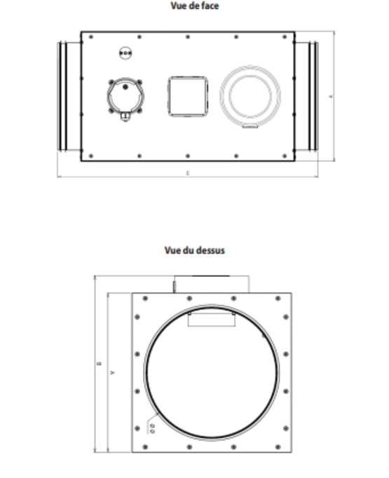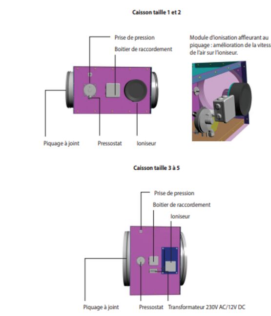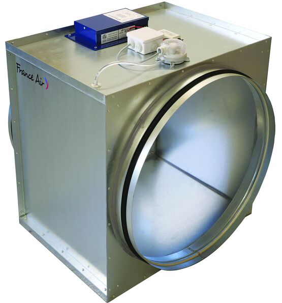 Le caisson en acier galvanisé s'adapte sur les conduits circulaires.