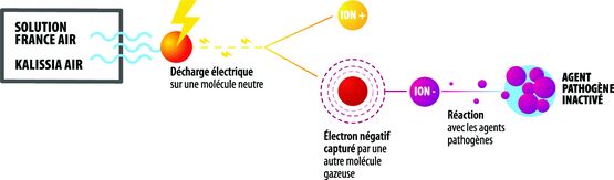 - Ions positifs et négatifs introduits dans le flux d'air du réseau