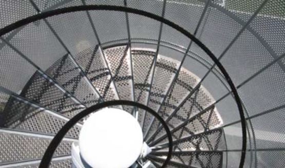 Doté d’une cage en tôle aluminium découpée ou perforée (perforation sur demande), l’escalier GANTOIS est composé, par ailleurs, d’un fût central en acier, qui supporte des marches en tôle d’acier ajourées, avec des trous en relief, gaufrées ou pleines.