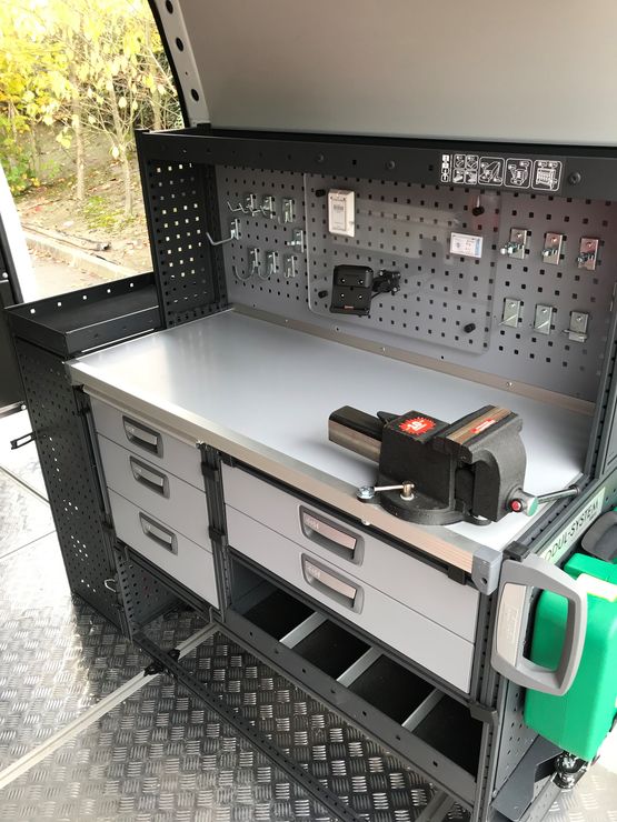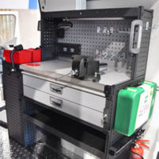 - Cet établi est fabriqué grâce à un matériau composite, 60% plus léger que le bois. De plus, cet établi n'est pas sensible à l'humidité et grâce à des protections en aluminium, montre une très grande robustesse.