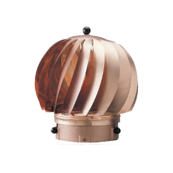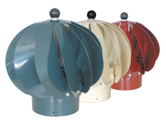 Extracteur constitué d'une voilure sphérique montée sur un système de rotation et support anti-vibration en aluminium. Deux versions : voilure en acier inoxydable ou cuivre pour le chauffage, en acier avec peinture polyester pour la ventilation et l'extraction des gaz issus des fosses toutes eaux.