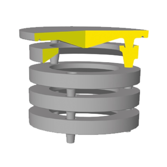 - Composé d'une dalle en forme de pointe de diamant et de quatre viroles circulaires