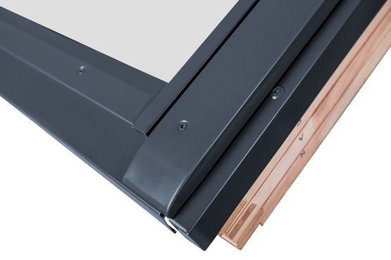 Fabriquée en pin sylvestre verni, cette menuiserie extérieure est équipée d'un système de renforcement empêchant le démontage de la vitre(topSafe), d'une vitre laminée anti–effraction de classe P2 A et d'une poignée avec fermeture. Un châssis pivotant de 180° autour de son axe et un couble vitrage thermo-isolant sont également intégrés. Le coefficient de transmission de la chaleur du vitrage est de 1,0 W/m²K et celui de la fenêtre est de 1,3 W/m²K.