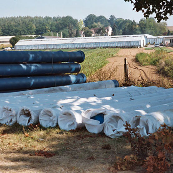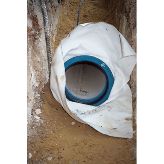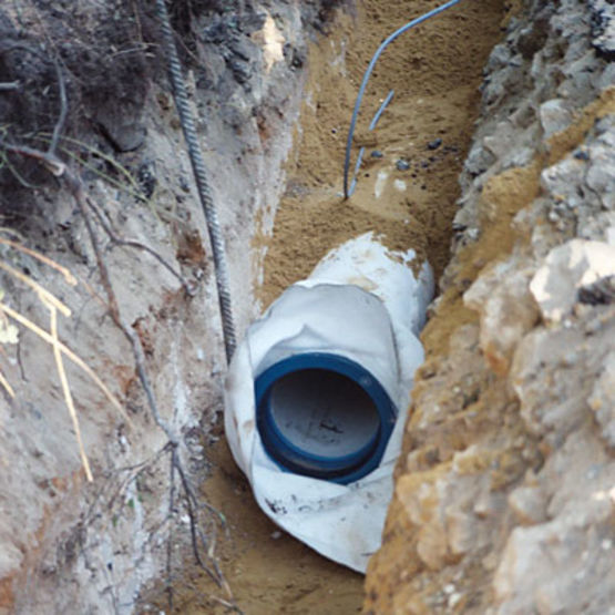 Livré sur chantier en rouleaux dont les largeurs sont prédécoupées en fonction des Ø des canalisations à protéger.