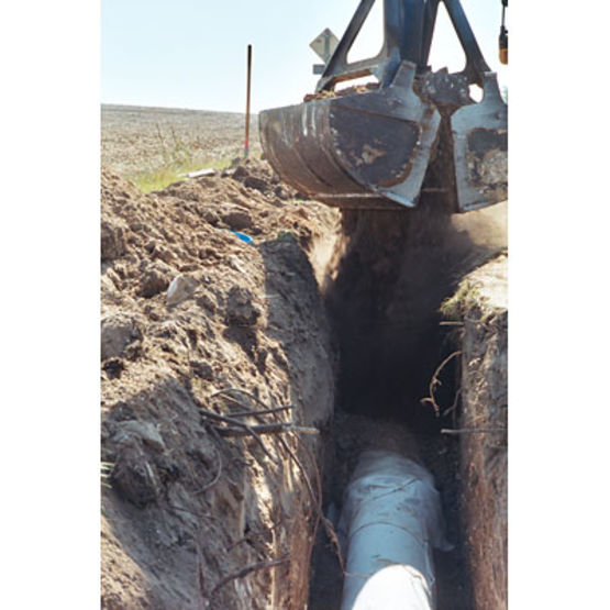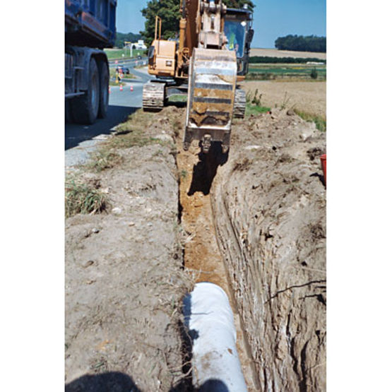 Protectiss empèche l’endommagement de la canalisation lors du remblaiement : Protectiss permet la rupture de contact entre le remblai et la canalisation en amortissant les chocs lors du remblaiement.