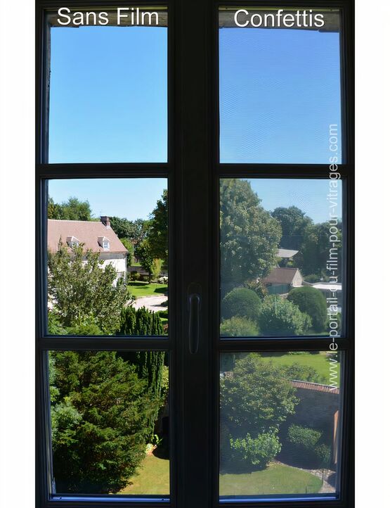 2. Design contemporain : Avec un choix entre une finition dépoli classique et une finition sablée scintillante ornée de 150 paillettes chromées par cm², ce film ajoute une touche moderne et unique aux vitrages.