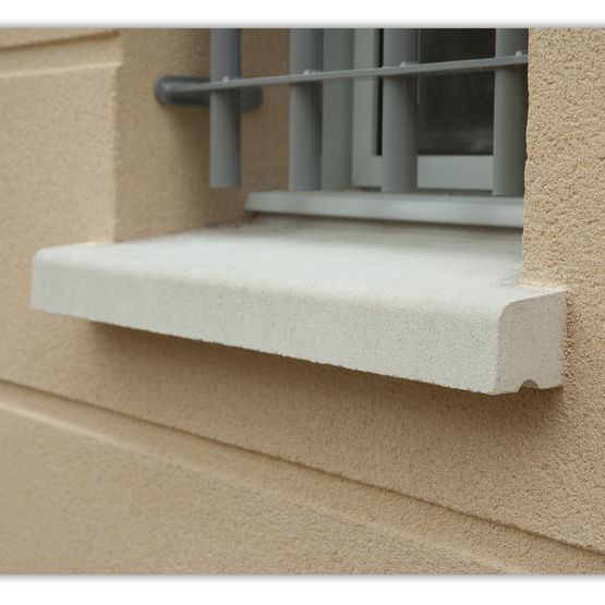 - Gamme d'appuis en béton (gris, blanc ou ton pierre) hydrofugé dans la masse avec rejingots latéraux.