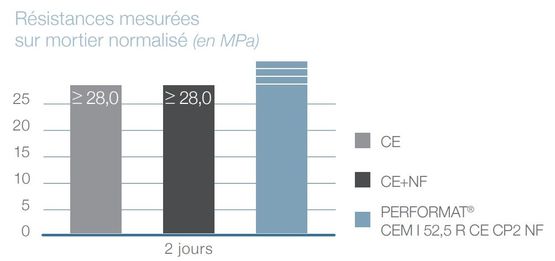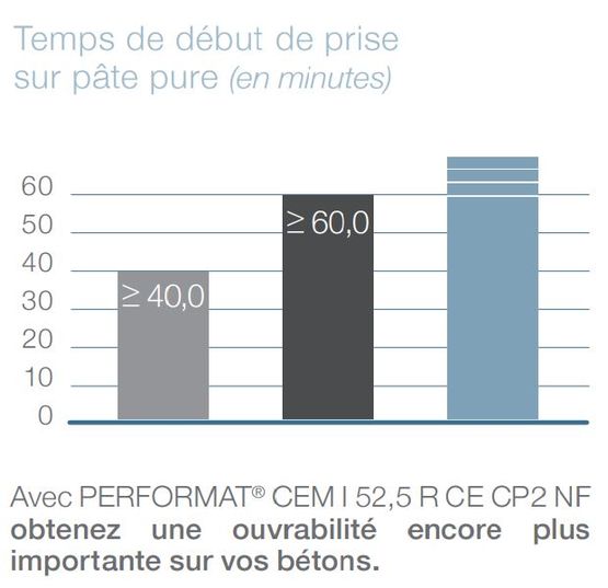Résistance et performance élevées : Les ciments PERFORMAT sont spécialement formulés pour atteindre des résistances mécaniques initiales et finales élevées, adaptées aux bétons à hautes performances (BHP).