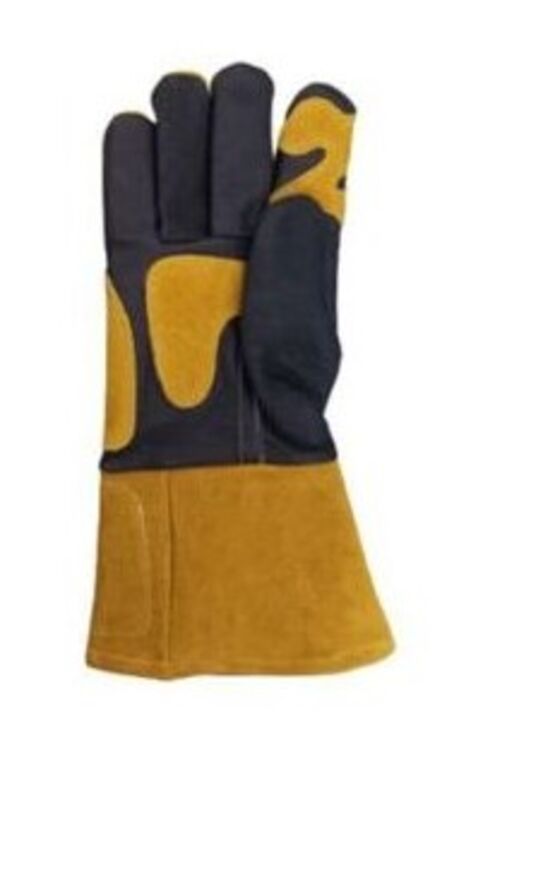 Ces gants sont dotés d'une manchette large et robuste en croûte de cuir, d'un confort et d'une durabilité accrus grâce à un cuir de qualité supérieure et à des renforts en cuir stratégiquement placés dans les zones où le soudeur se sent le plus à l'aise.