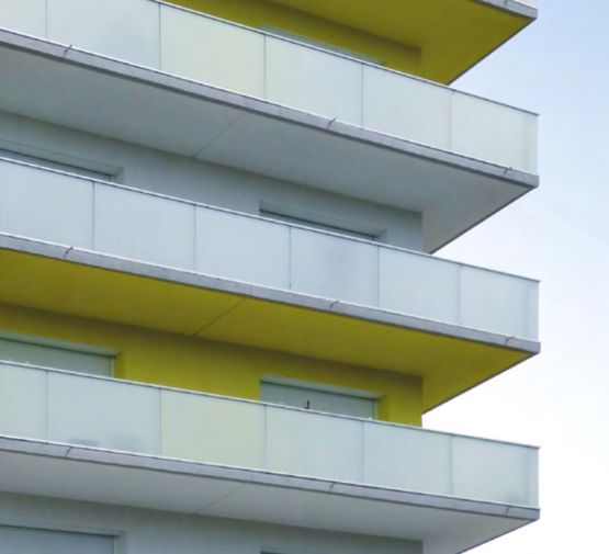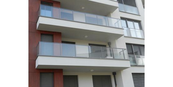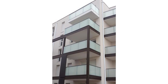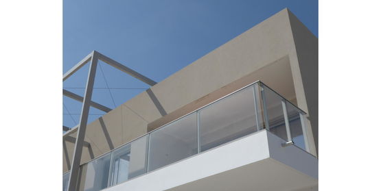 FERIE PURE LINE propose un remplissage en verre qui "file" devant l'ossature du garde-corps.