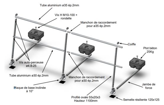 - Installation sans percement ni fixation sur la dalle ou l'acrotère